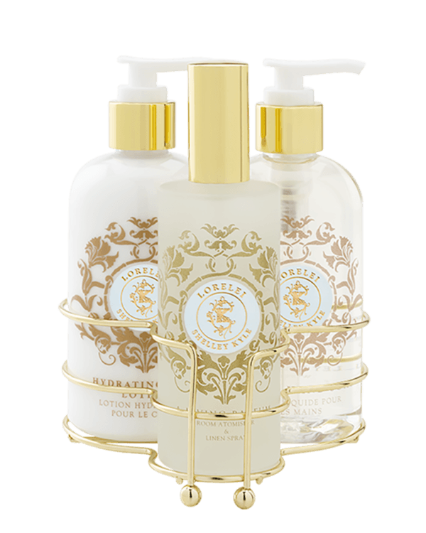 Delightful and lingering, there’s a lot to love about our Lorelei Three-Piece Caddy with Lotion, Liquid Hand Soap and Room Atomizer. Protect and nourish your skin with our hand soap an dlotion, and give any room in your home a fragrant refresh with the room atomizer. Experience the South through the wonderfully fragrant scent!